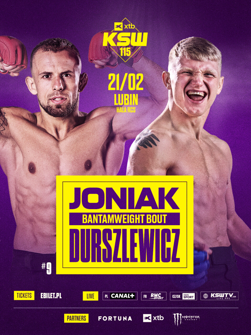 Już 21 lutego w Lubinie Mariusz Joniak (12-6, 2 KO, 8 Sub), numer dziewięć rankingu kategorii koguciej, zmierzy się z niepokonanym Karolem Durszlewiczem (4-0, 2 KO, 1 Sub). Do konfrontacji dojdzie podczas gali KSW 115 w hali widowiskowo-sportowej RCS.